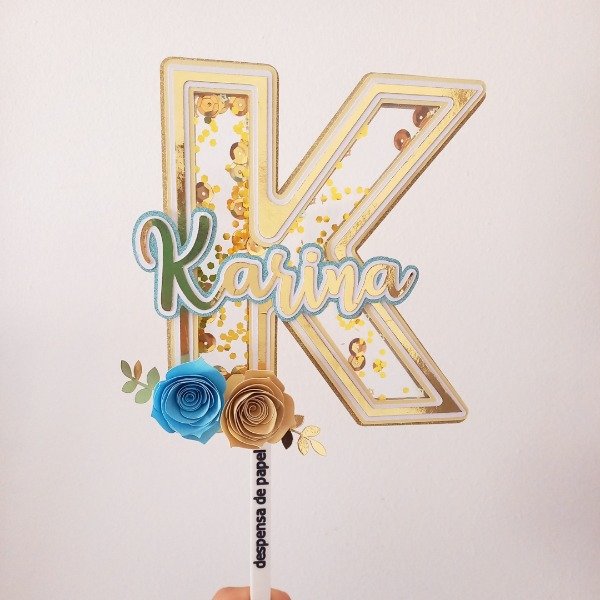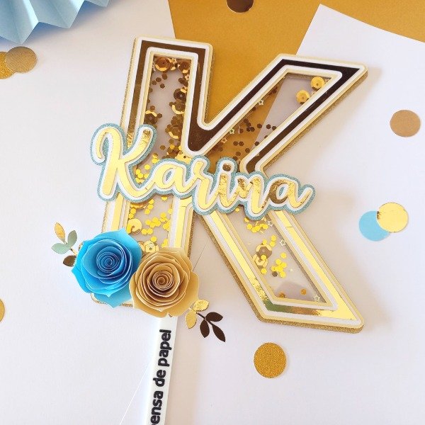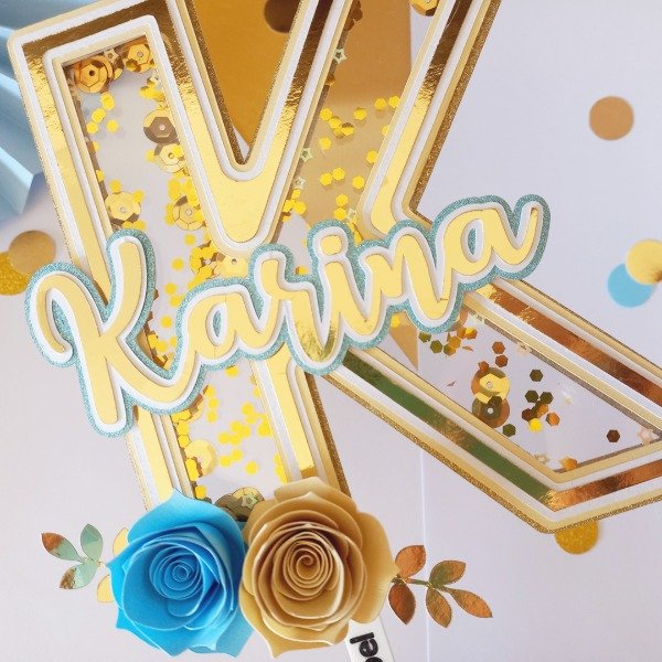 Letra o número con shaker y aplique tipografico (felicidades, nombre, etc.)